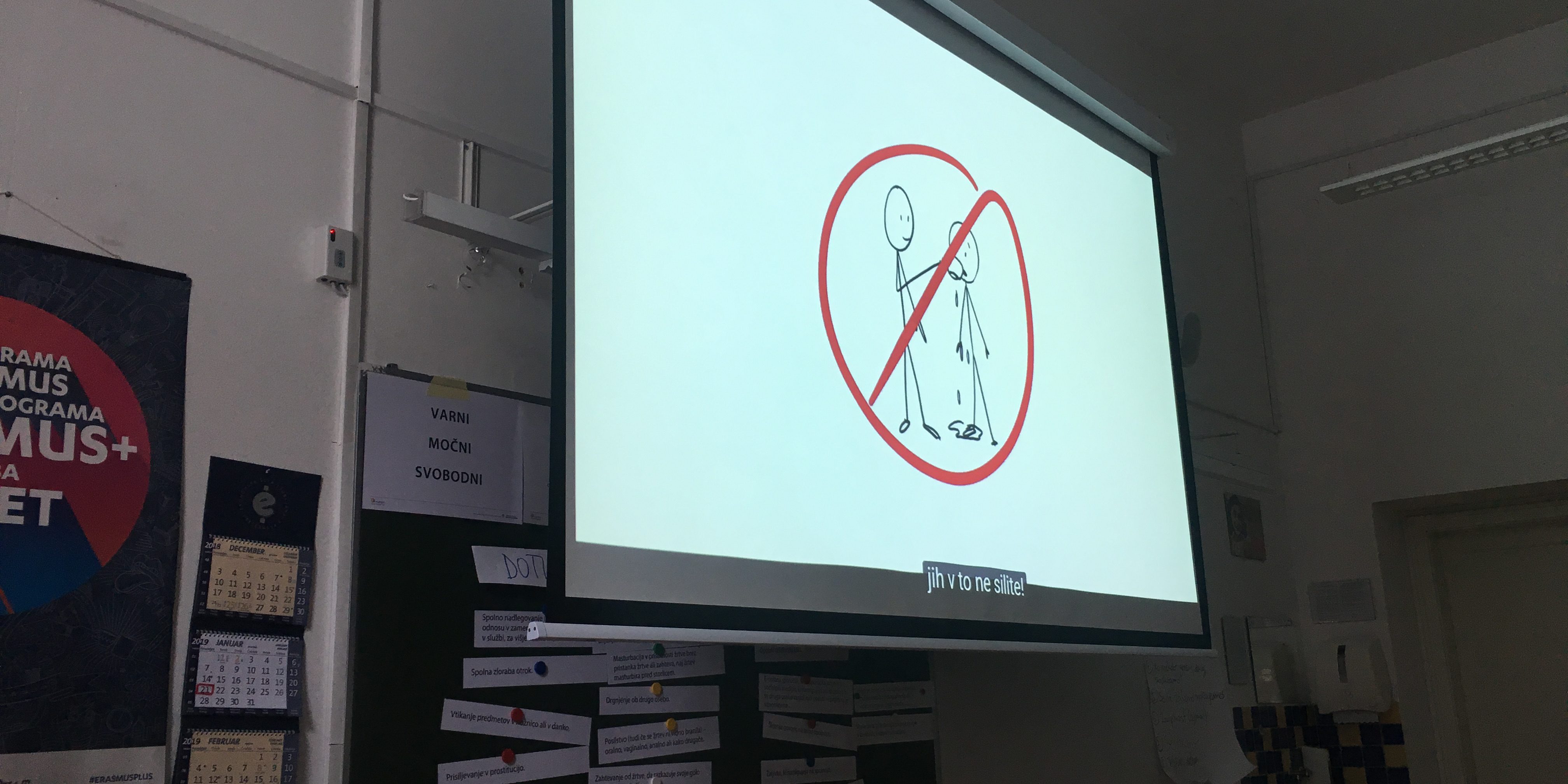 V tem tednu smo nadaljevali z izvedbo delavnic za dijake in dijakinje dveh oddelkov prvega letnika Ekonomske šole Ljubljana. Tema tretje delavnice je spolno nasilje. Žal tudi v zvezi s to vrsto nasilja obstaja precej zmotnih predstav oziroma mitov, kot so na primer: 1) žrtve spolnega nasilja so mlada in privlačna dekleta (dejstvo je, da je žrtev spolnega nasilja lahko vsak); 2) Moški povzročajo spolno nasilje pod vplivom alkohola ali drog (dejstvo je, da oseba nasilja ne povzroča zaradi alkohola in drog, temveč so v ozadju drugi razlogi, pogosto npr. želja po moči, ponižanju, prevladi); 3) Če se oseba obleče seksi in izzivalno, je sama kriva, če jo posilijo (dejstvo je, da je za nasilje vedno odgovoren tisti, ki ga povzroča). V prvem delu delavnice smo tako skupaj z mladimi razmišljali o mitih in predstavili dejstva.